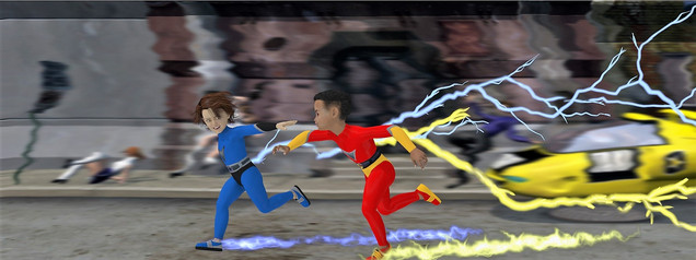 #car #daughter #father #running #son #street #superheroes #superheroines #twins #speedsters