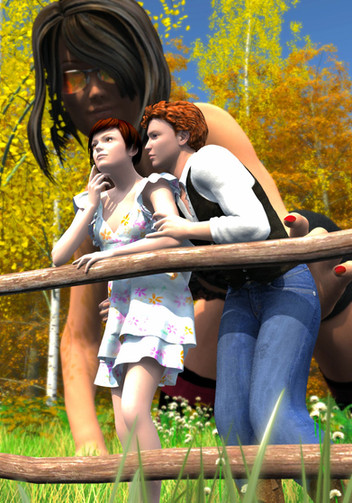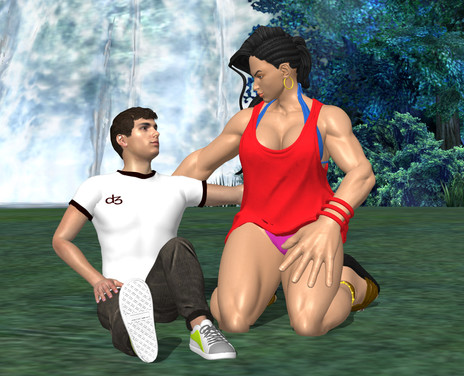 #bench #couple #giantess #napping #superheroine #trees #villain