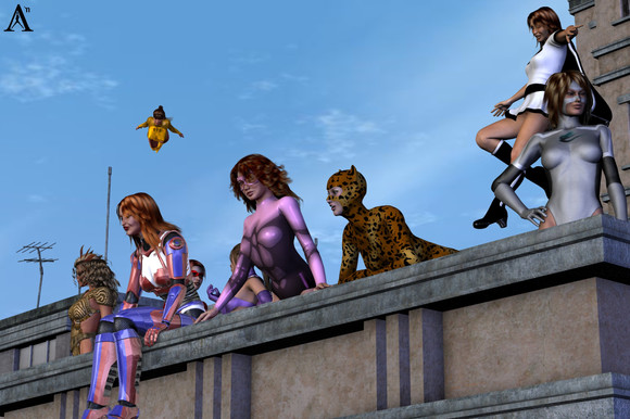 Sisters of Sin are bit of what they call fun getting the drop on RPM. Thankfully Virago RPM's wife and fellow hero Miombo show up in nick of time.Haylee: Uhh sis it's time for a "tactical" retreat.