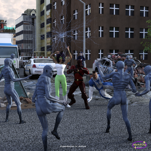 This is a follow up to my previous post. Story wise these are villains who have captured my female teen superheroines boyfriends. A tough group of characters that are really testing the girls. From left to right:Sisters of Sound. Haylee is the smaller of two able generate sonic blasts and focus them into destructive force. Kaylee is able to absorb sonic energy and turn into raw physical strength increasing her normally small frame into a larger more muscular form.