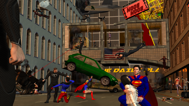 Part four in my recent series the young team of Super Scoots burst into the scene to help there teenage family and friends rescue. Bookwork being psychic picked up on the trouble and got team together to help turn the tide of battle. Becca and Phenom don't have any siblings so they are both surprised as well happy for the help. Rebound and Tyro are little humbled to see younger sisters come to aide.Tried a few different things in this pic and did a little layering in Photoshop to pull this one off.