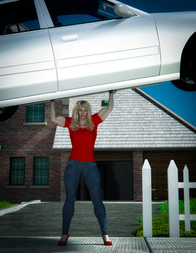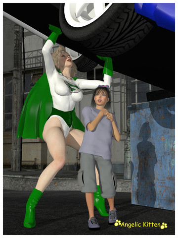 Here we have May Mettle AKA Moxie on "light" training day with her son Kevin. Both have the power of super strength and durability. Kevin's puppy Kane and his friend Kia an earth elemental decide to tag along.Moxie: Okay Kevin we're going ten times around the block be sure to keep the girder over your head the whole time.