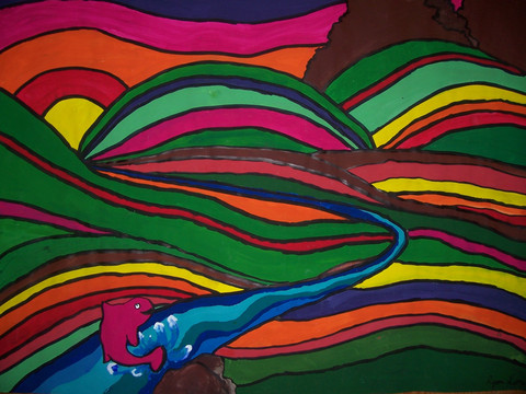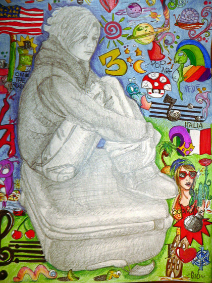 Medium: Winsor & Newton Galeria Acrylic, black felt, watercolour, pencil crayon, sand&glue, charcoal, oil pastel and small touch-ups in Photoshop.