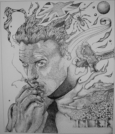 You can by the print now, wow cool. I see you used photoshop,nice. Excelent work I was just wondering why the white hair, but after that truly amazing.