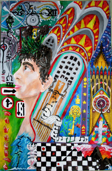 The whole concept that enveloped my mind was to make this so that the relation within the painting was that there was no relation.This is the purest form of what i can explain to be my "randomworks", because that is what it is, random-work.