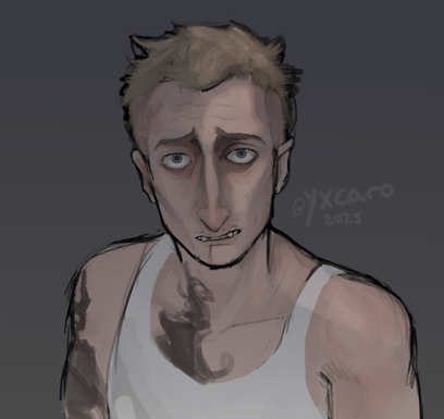 #basement #crazy #evil #ginger #greasy #illustration #jux #krita #male #man #mischievious #musty #pov #tanktop #yxcaro #yxcarooc