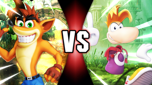 Well known for using unorthodox ways of fighting (Crash's Tornado Spin/Rayman's Limbless Body), even ways of gliding through the air by using their bodies (Helicopter Hair/Death Tornado Spin). With weirdly effective arsenals to pass through enemies, to shoot at them (Crash's fruit bazooka is able to shoot out wumpa fruit/Rayman using his plunger gun that shoots out plungers).