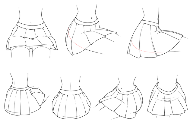 Clothing reference: Fabric anatomy of mini skirt, folds are essential for drawing realistic clothing on a human being.Related content
