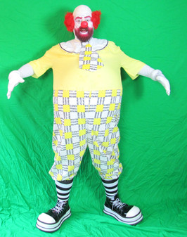 To make the butt even look bigger, Joe would either shave his head, or wear a scull cap, and top it off with a undersized hat. There was a cowboy hat, a tiny fez, a clown hat and a small fire hat. To finish off the outfit he wore big platform, black-and-white wing tips I brought back from London with me. Let me tell you, when he got the whole thing on and then added the make-up, we are talking one hellava clown statement. Sometimes he would make little kids cry. I think it was just like overdosing on too much visual clowness. Kinda like the Stay Puff Man from Ghostbusters.