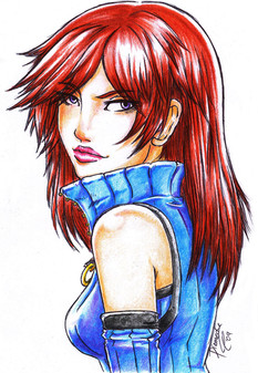 Lovely use of prisma markers, especially on the hair. Lovely lineart, I like the details (especially on the chest and armor). Really lovely!