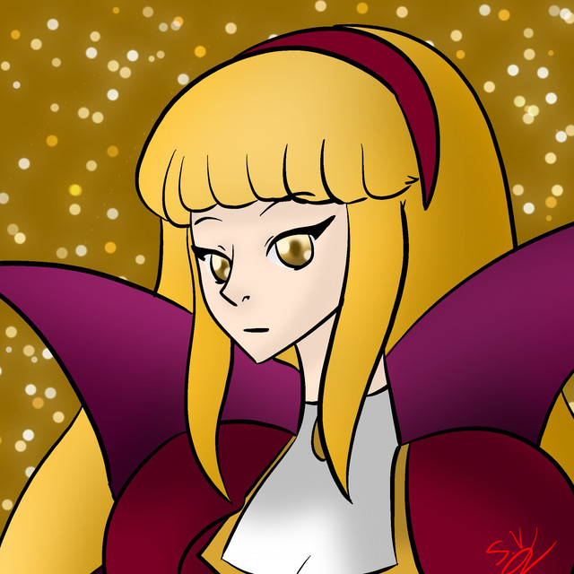 Oh wow this is so elegant and beautiful, the look of it all is lovely. And just in time for my bday too! The tilt of her head is so gorgeous to me, and the red embers/fireflies re such a sweet touch. I love it, thank you so much its so beautiful!