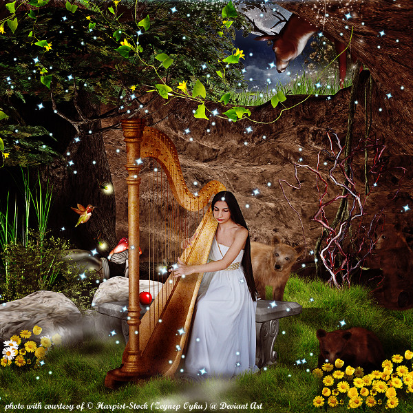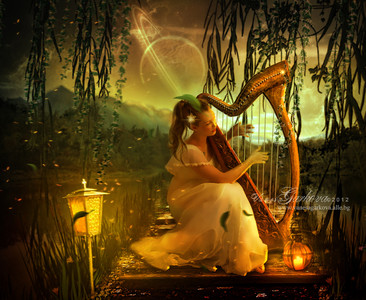 Ranka, I am always pleased with your work! Your choice to do this scene makes me smile as I have been currently writing Book II and I have Ix as a Greek-based society. (As if Greeks from around AD 70 were brought to Ix and the civilization developed from them.) Several scenes in Book II have Lyre's being played, and in fact your own picture here makes me think of one itself. I can hear the notes your character is playing! She seems quite concentrated as she plays. Is it one of the songs from Ancient Greece or Ancient Israel brought back to life? It doesn't matter as it would sound delightful! The whole scene just invokes the soothing notes coming from her fingers! Wonderful and ethereal!
