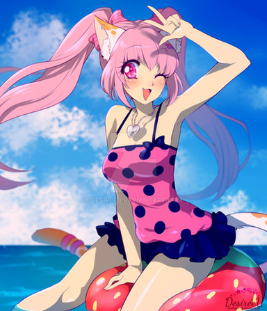 #anime #ff14 #art #bikinigirl #commission #cutekawaii #gossipgirl #illustration #swimmingpool #finalfantasyxiv #miqotegirl
