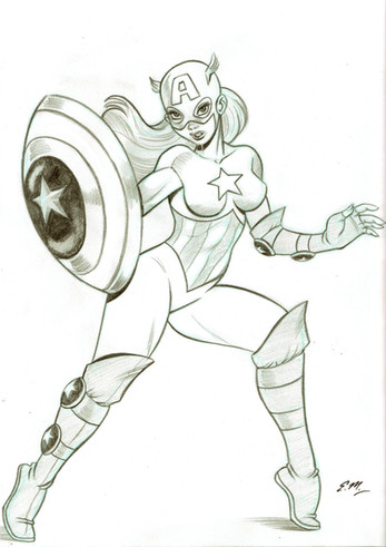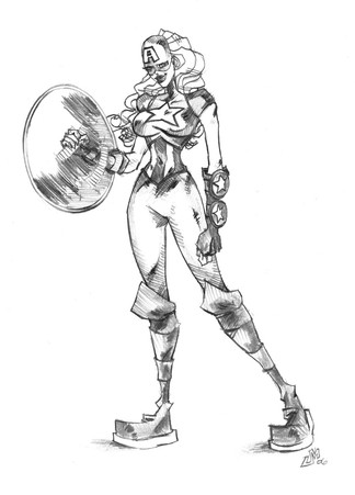 OMG THAT IS CAPTAIN AMERICA!! HOly crap batman.. that RULES.. yeah all teh badguys would just start drooling, so she dosent even need to do anything to stop them. Love it!! And you see sometimes you just need slow days to get great drawings.
