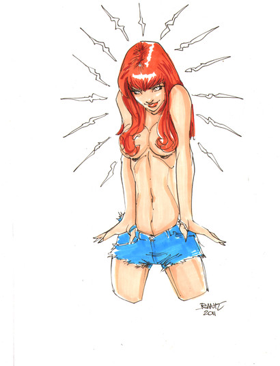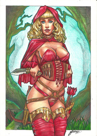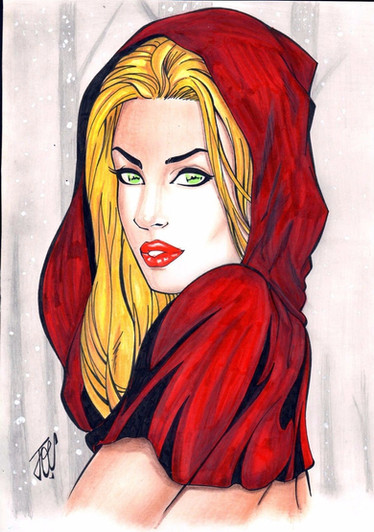 I have BIG plans for this image in the near future....After doing a bunch of GRIMM FAIRY TALES sketch cards, i had to draw her "life size". I added my own twisted little spin on her, of course.Size: 8-1/2x 11 - Copics on Inks, Prisma Markers on Colors, and me on Drums....