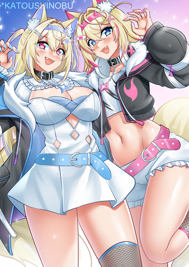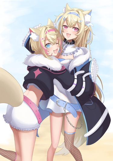 #mococo_abyssgard #cuteanimegirl #digitalart #doggirl #illustration #twins #hololive #vtuberfanart #hololive_fanart #fuwamoco #fuwawa_abyssgard