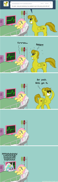 Fine? Hopefully he can overcome his fear of butterflies, particularly Fluttershy's cutie mark have 3 of them.