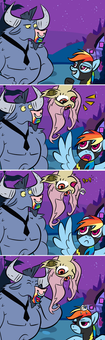 hahahaha, well done, well done. I imagine Discord must trnsfform himself a lot, too, when Bulk is around Fluttershy cottage.