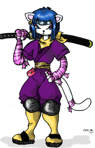 I've drawn a few pics of Rapha in clothes, but they were all chibified and most of them ended up as scraps, so I decided to do a full-sized, regularly-proportioned pic of her with her default outfit on. I even drew her sais, which I leave out a lot of the time cuz I'm lazy ^^* She has them through her belt loops like Napoleon Dynamite XDRelated content