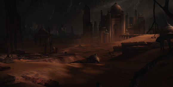 Interesting. A samurai in a city that appears to have an architectural style more commonly seen in the vicinity of the Indian ocean. Gives the whole piece a real fantasy vibe.