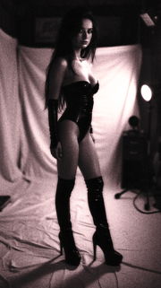 WOW! Fishnet, Boots, Corset & Latex!!! Strong contrasts, sexy model, and strong sexuality... I lust for work like this