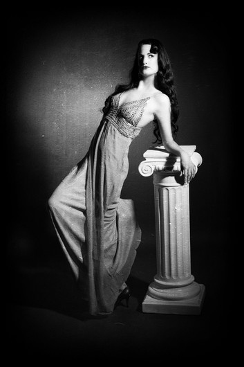 Wonderful portrait photo. It feel like a scene from a play. I love her pose and the fact that she is looking past the camera. Add a sense of mystery.