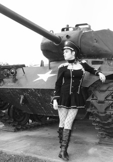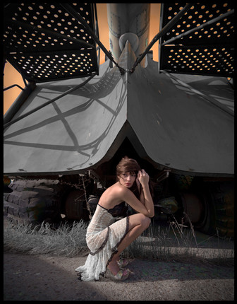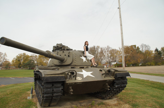 I am not really clear on subjecm matter on this one... da tank seems to be in the center of attention .: i think i'd be cool to get more of a closeUp shot so it'd not look like the tank is on display .: then you could have some cool flames coming out from the engine and planes dropping bombs from above and maybe some guy with a frying pan and patch on his eye or something.... he he he