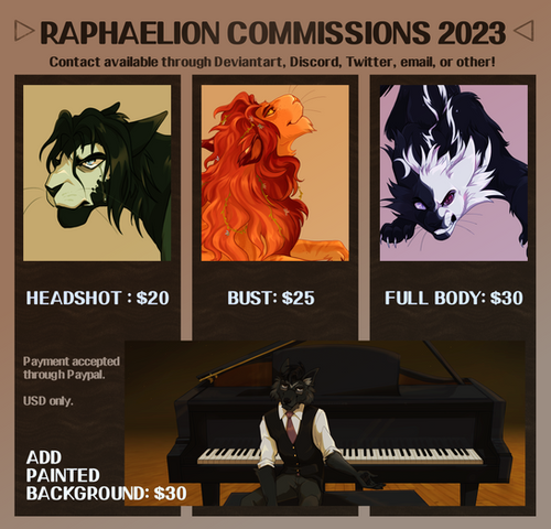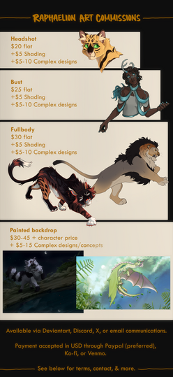 Terms of Service, as well as payment info and what specifications I will/will not draw: raphaelcomms.carrd.co/