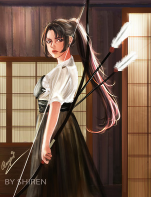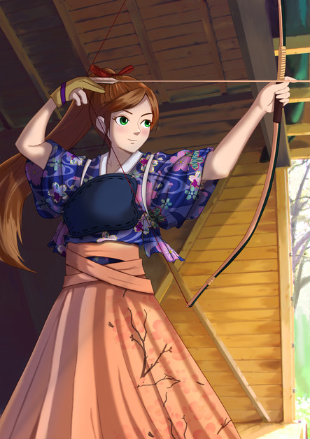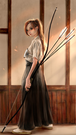 #anime #archer #arrow #bow #cute #female #girl #kyudo #painting #semirealism #traditional #woman