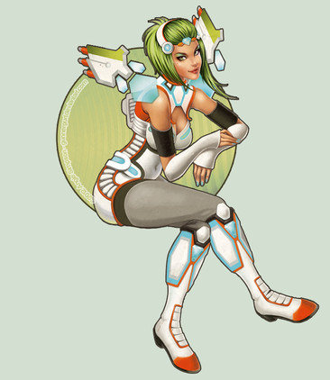 I really like her! It must be handy to have that techno backpack lol. Love the pose and the colors on her.
