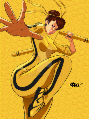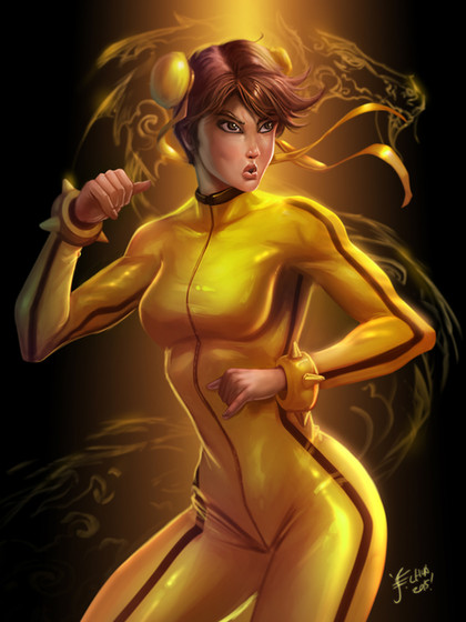 #blood #bruce #girl #lee #nunchaku #woman #yellow