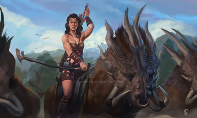 Here's the final piece I've been cooking up while working on some freelance stuff.A tribe of orcs hunting for game encountered a beast they've never seen before and get's freakin hammered by it.