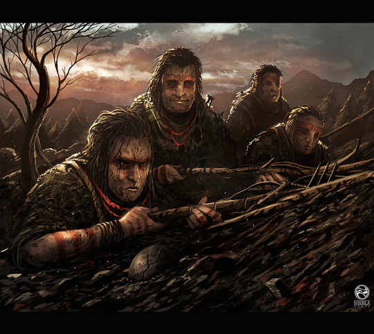 Holy, epically wondrous! All of The Mighty Neanderthals are stunning and the Cave Scenery looks incredible! The designs, expressions, poses, ceremony, interactions, tribal markings, clothing, skins, mammoth tusk, spears, weaponry,eyes, beards, hair, flute, gloves, jewelry, cave floor, terrain, decor, crevices, music, fire, sticks, boulders, ceiling, mountains, ledges, cliffs, sunlight, rays, smoke, haze, movement, flow, effects, perspective, realisticness, atmosphere, hues, textures, concept, composition, uniqueness, colors, lighting, style, and other details are also sensational! Amazingly radical work!