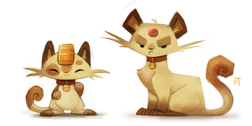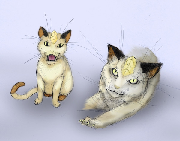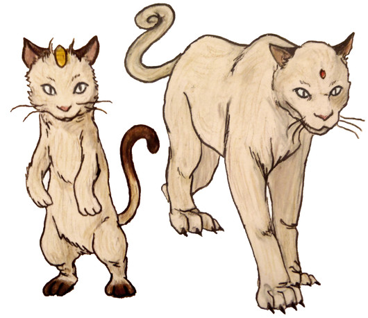 You got the expression on Meowth so doggone accurate, though! I don't know how but you did! Looks kinda like he's somewhere between an annoyed shout and a sneeze. Love it! And Persian looks amazing as a realistic big-cat-creature. Looking like a great blend of house cat and lion/cougar.