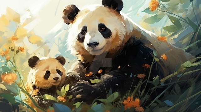 Pandas... cute and cuddly... i love the lighting and distribution of yellow a ton!