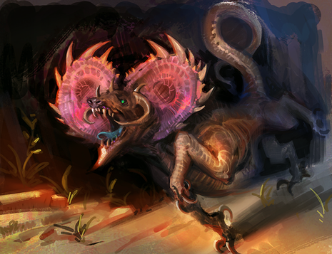 Critter designcave dwelling predator the size of a large dog. It flashes out blue lights on its fleshy tail when confronting prey or when threatened by bigger creatures.