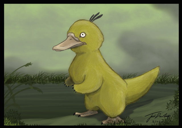 I would have made Goldduck a bit more aquatic. More like a Penguin or Puffin than the Dinosaur-inspired design here you went for here. But it is well crafted and you have a great eye for lighting over feathers.