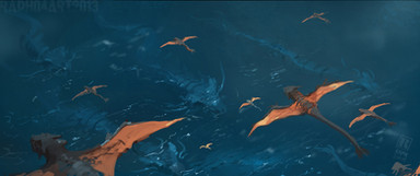 Feathered dragons are indeed awesome (probably the same as feathered dinosaurs I guess). I really love the super dynamic pose and the wings of the dragon. Also your use of some blur fits perfectly into the whole scene. Fantastic artwork!