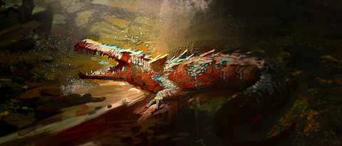 I like the roundness of its shape, and the slight pudginess to the face. It's nice to see when artists depict dinosaur-like creatures (even fictional ones) as not simply being skin, bone, and muscle.