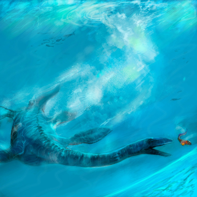 This kind of has a loch Ness monster -ish feel to it. Especially considering that some versions of the Loch Ness monster are more snake/serpent like while others are Plesiosaur- designed