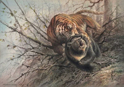 A tiger finishing off a damn poacher. I started this out as a 30 minute speedpaint but I felt dissatisfied so I rendered it a bit further until it turned into the image you see above. If you wanna check out the speedpaint version go through here : www.facebook.com/photo.php?fbi… I hope it works.Related content