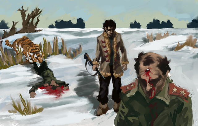 This looks like the moovie "The tiger: An old hunter's tale". And aswome painting! I hope tath guy dies.