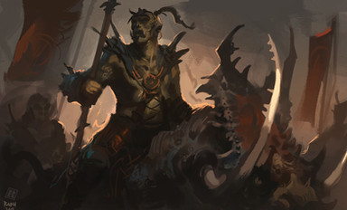 A band of yellowish orcs trying to hunt down a forest troll (not shown here)Related content