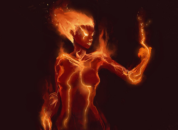 I was just thinking earlier today That I'd love to see an illustration of a female figure with glowing tits and flame wings, and voila, here it is. Nice job.