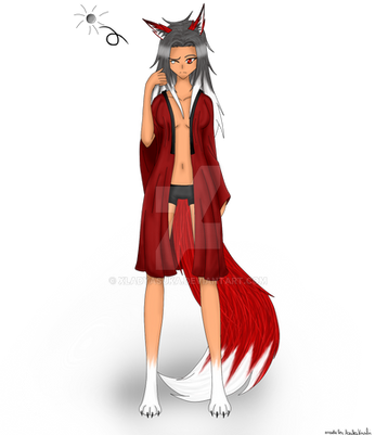 lineart that i did a while ago, finally decided to color it. couldn't stay away from drawing my oc again... meh.Kailey is my OC fox-girl.
