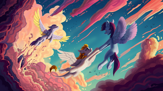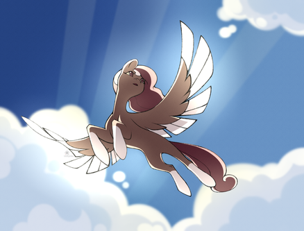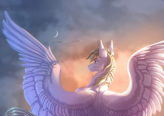 Oh my gosh this is beautiful! Do you take commissions for Pegasus flying drawings like this, I would adore one for my ponysona haha I dream about this ALL DAY! XD I just can't get over how amazing it is!!!!