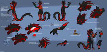 Okay so first things first, she's no longer just a raptor!!!I know, it's a huge change. I wanted something new for her, I found I was in a huge dead zone with wanting to draw her because she was sort of plain to me now, so i went through multiple animals to see which paired the best with her and i settled on snake, as a lot of her normal attributes worked with the snake motif.