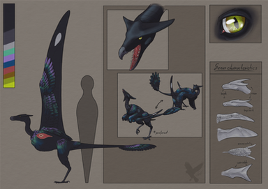 His feet sport a large cartilage spur which can be flexed to extend sections of highly elastic skin. He uses these to both perform sharp turns in the air and break upon landing. The spur can be tilted back and forth, creating more or less drag.