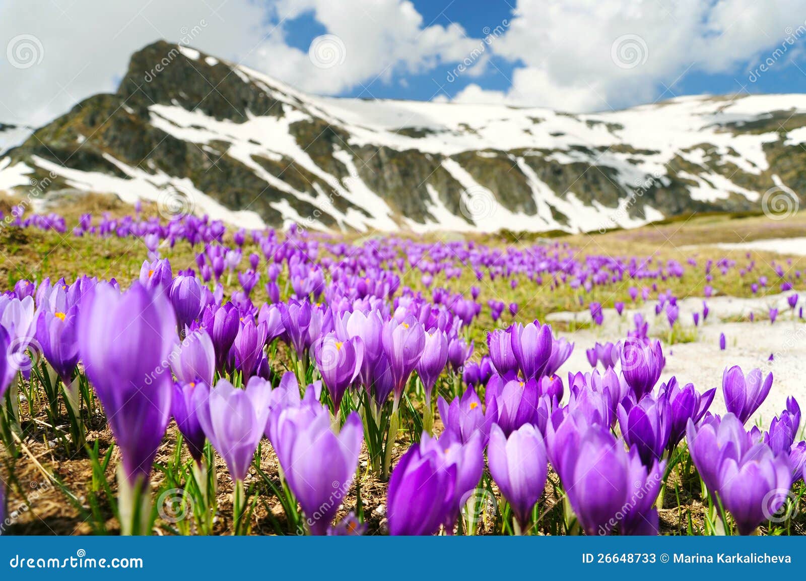 Also, that foliage with that backdrop is breathtaking! And don't worry too much because of the patch of snow. There are several real life locations that have similar phenomena. [Ref 1] [Ref 2] [Ref 3] . Spring in the mountains can do such things so technically this is not wrong. Plus, if you feel like it would fit you can make it work. It's your worldbuilding after all