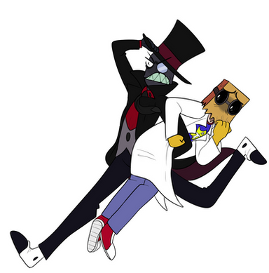 great art! I'm curious though, are these two from another AU? that question mark on black hat's hat looks familar